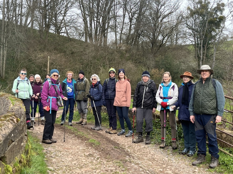 Twenty-six on a fabulously sunny morning, all anxious for the ‘ rays’. Interesting to also see some of the vehicles taking part in the ‘March Hare Trail’ a classic car and motor bike event. After a steady incline we were glad to have the fallen tree to rest, recuperate and recharge for the next section of the walk.